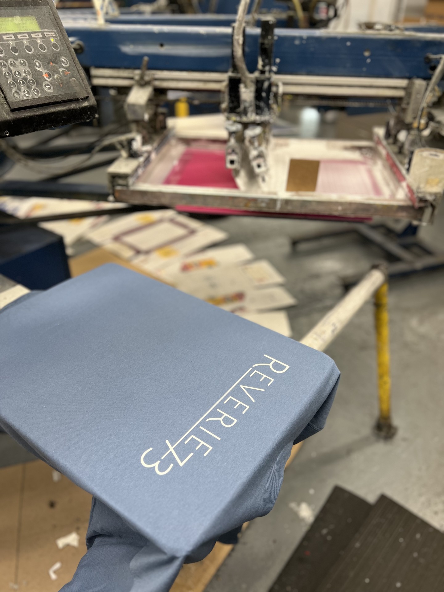 We transform your ideas into vibrant, durable prints that make a statement.Whether you’re outfitting your team, promoting your brand, or creating unique merchandise, we handle orders of all sizes with precision and care. Our state-of-the-art screen printing process ensures your designs stand out with vibrant, long-lasting quality. All done in-house on our large-format presses and manual presses for custom detailing such as personalization or numbering.